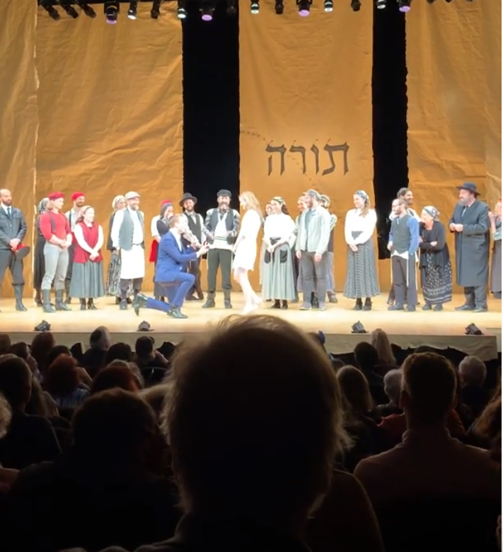 OMG: if you want to know how to get engaged to the one you love; you must watch this video taken at a very recent performance of Fiddler on the Roof .  Mamish awesome!  Click here: you will not be disappointed. And mazel tov once again to Dr. Dana Berg, she the beautiful and very accomplished daughter of our close friends Naomi and Howie Berg, and to her chatan Itai Abelski, he from Germany and Israel – upon their recent engagement -being celebrated this evening.  May Dana and Itai merit to enjoy each other for the rest of  their lives and may they together build a bayis ne’man bi’yisroel. Le’chaim! A big mazel tov to both families.