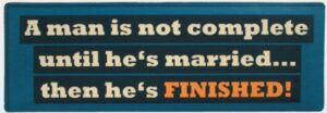 A man without a wife is not fully complete? They did forget to tell us that once married, that same man is finished, over and done!