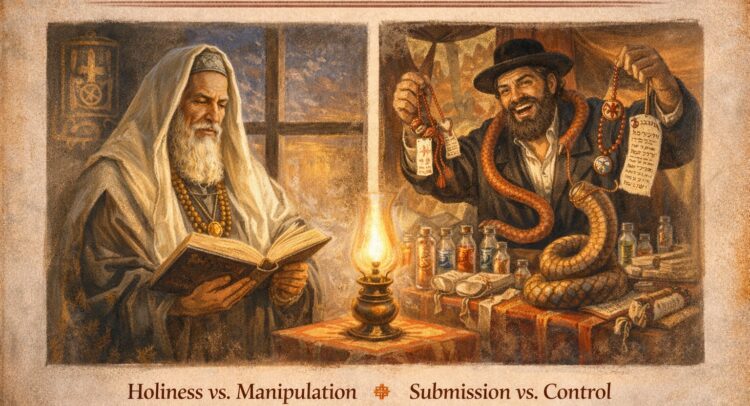 And this brings us full circle to today’s final bottom line: Back on page 1, the Ois asked what the snake, the Mekubal & the snake oil salesman have in common?  Drumroll and here’s the answer. Paroy never really left. We see him in every attempt to control reality through human trickery, specifically through miracle-working snake oil mekubalim, amulet sellers, and segulo experts. The Rambam forbids any attempt to command supernatural forces (Mishneh Toirah, Hilchos Avoido Zoroh 11:16) and says this: Anyone claiming personal supernatural power—regardless of holy garb—resembles Paroy’s magicians, not Aharoin. They promise results, manipulate perception, and create the illusion of mastery. The pattern is identical: humans are tempted by appearance over reality. Those who have their handlers sucking out your money, are but peddling snake oil. Beware!