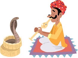 What is Snake charming? It is -so says the Achroin (latter day commentator) Wikipedia, azoy: snake charming is the practice of appearing to hypnotize a snake (often a cobra) by playing and waving around an instrument called a pungi. A typical performance may also include handling the snakes or performing other seemingly dangerous acts, as well as other street performance staples, like juggling and sleight of hand. The practice is most common in India, though other Asian nations such as Pakistan, Bangladesh, Sri Lanka, Thailand, and Malaysia are also home to performers, as are the North African countries of Egypt, Morocco and Tunisia. Ancient Egypt was home to one form of snake charming, though the practice as it exists today likely arose in India. It eventually spread throughout Southeast Asia, the Middle East, and North Africa/ Veyter (let’s move on)!